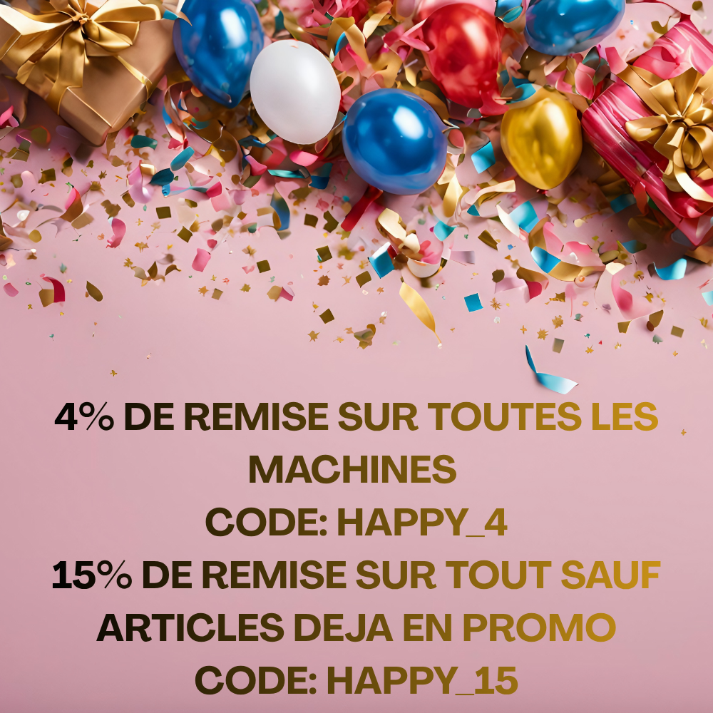 MAISON SCHWIND FETE SES 4 ANS !!! PENDANT TOUT LE MOIS D'AVRIL : 4% DE REMISE SUPPLEMENTAIRE SUR TOUTES LES MACHINES AVEC LE CODE "HAPPY_4" & 15% DE REMISE SUR TOUT LE SITE (HORS ARTICLES DEJA EN PROMO) AVEC LE CODE "HAPPY_15" !!! PARTICIPEZ A LA CHASSE AUX OEUFS EN LIGNE : 1 OEUF DANS LE PANIER = 1 CADEAU ! BONNE CHANCE !!!