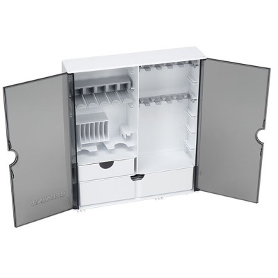 Ce coffret pratique pour les accessoires BERNINA vous permet de ranger vos pieds-de-biche, canettes, aiguilles, etc. Ainsi, vous avez toujours tous vos accessoires sous la main. Des pieds dépliables assurent une bonne stabilité au poste de travail.