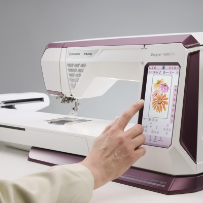 La machine à coudre et à broder DESIGNER TOPAZ™ 65 possède tout ce que la machine TOPAZ 55Q offre, apportant la broderie dans votre monde, avec une grande zone de broderie, une position exacte et des motifs de techniques spéciales.
