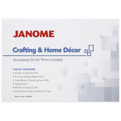 Le kit de couture et de décoration intérieure est parfaitement adapté aux projets de couture décoratifs. Ce kit est un ensemble de démarrage idéal avec 5 pieds-de-biche. Le guide Janome MiY – « Make it Yourself » vous montre de manière simple comment utiliser les accessoires, avec des conseils et des idées.