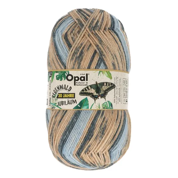 Le fil Opal Regenwald édition 20 ans, à 6 brins, est très résistant et fabriqué à partir de 75 % de laine vierge (superwash) et 25 % de polyamide, disponible dans une sélection de tons colorés. Ce fil est particulièrement adapté pour tricoter de jolis chaussettes chaudes avec des motifs de couleurs uniques, mais il est bien sûr également parfait pour les pulls, bonnets, gants ou écharpes. Vous pouvez tricoter une paire de chaussettes (jusqu’à la taille EU 44) avec une seule pelote !