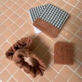 Nikko est un ensemble de patrons pour créer 6 accessoires pour la salle de bains et les voyages : un bandeau et des poignets, une lingette, une pochette pour savon, des pochons de rangement en trois tailles et une trousse nomade.