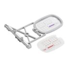 Le petit cadre de broderie (zone de broderie max. 50 x 72 mm) convient particulièrement pour les petits ouvrages de broderie et la broderie à mains libres d’ouvrages de couture fermés tels que les manches, les jambes de pantalon, etc. La broderie est exécutée en un rien de temps avec grande précision. Le gabarit inclus permet d’aligner exactement le tissu.