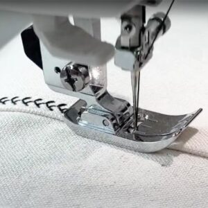 3-Nadel-, 5-Faden-Flachbett-Coverstichmaschine mit Ober- und Untercoverstich. Ausgestattet mit elektrischem Ober- und Unterfadenabschneider. Im Kopf integrierter Mini-Servomotor. Unterfadenabschneider und Nähfußlüftung werden durch Schrittmotor aktiviert.